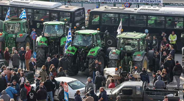 Farmers from the central agricultural region of Thessaly, where floods devastated crops and livestock in 2023, drove their tractors to the nearby city of Volos and parked them for a few hours outside the port. Police blocked the entrance to keep them away from passenger and cargo terminals.